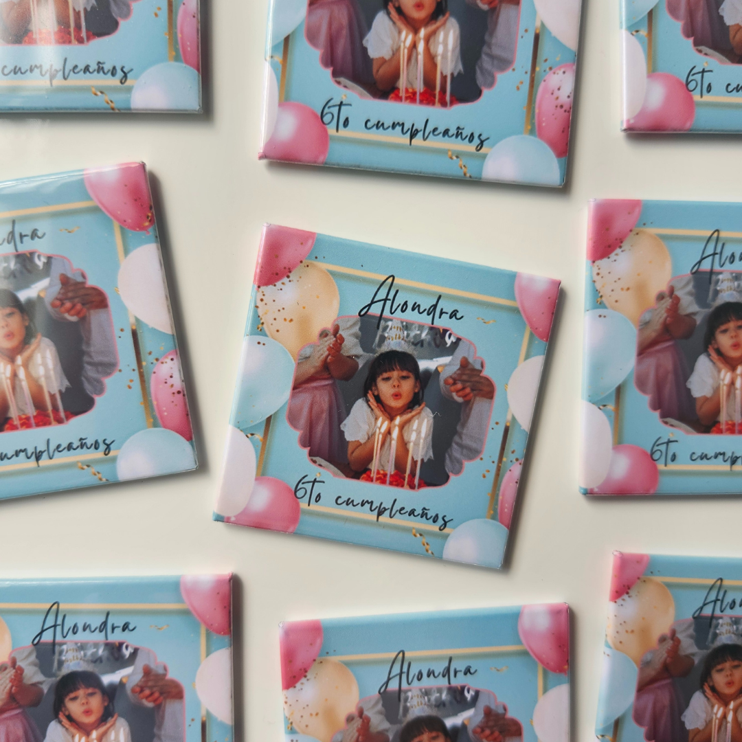 Los magnetos personalizados de 2" x 2" en acrílico son perfectos para eventos especiales como bodas o cumpleaños. Su tamaño compacto los hace ideales como recuerdo personalizado, permitiendo que tus invitados conserven un detalle memorable de la celebración. Además, su acabado profesional y diseño a medida garantizan un impacto visual atractivo, fusionando funcionalidad y estilo para realzar cualquier ocasión.